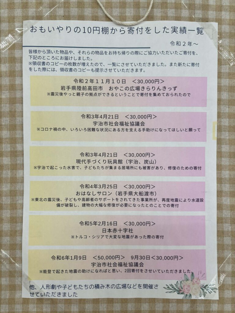 代表してご寄付をさせていただいています。コロナ禍の頃にはじめたので、そろそろ7年くらい続けているでしょうか?